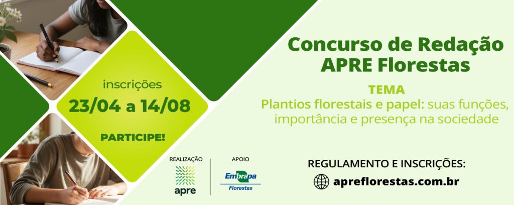 2.1 O Concurso de Redação APRE traz como tema “Plantios florestais e papel: suas funções, importância e presença na sociedade”.