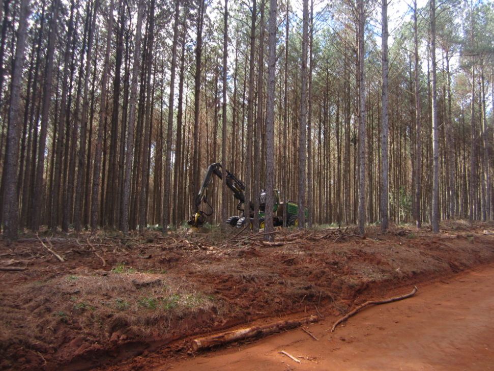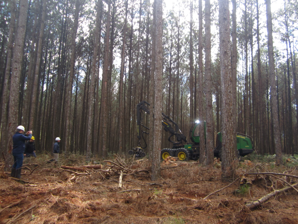 “Estamos fazendo o segundo desbaste nela. Utilizamos as máquinas Harvester 1270 e Forwarder 1710, ambas da John Deere, que estão trabalhando com volume médio por árvore de .46. Atingimos uma produtividade de cerca de 37 cúbicos por hora para a Harvester, por exemplo. O consumo de diesel é de aproximadamente 17 litros por hora na Harvester e 14 litros por hora no Forwarder”, explicou.