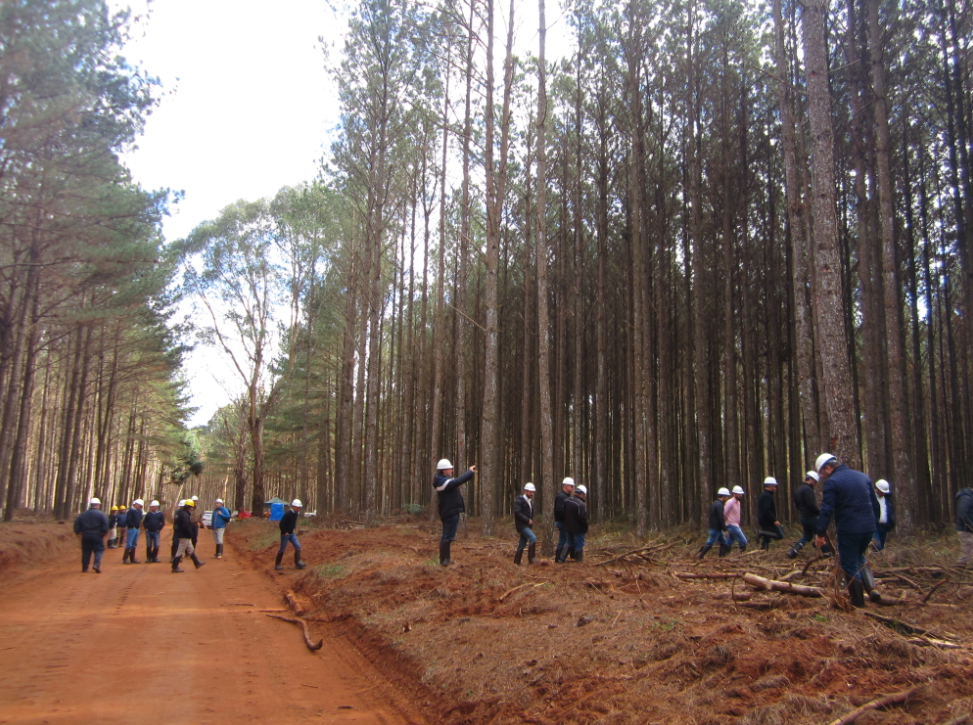 Scheffer Junior destacou que a Águia está trabalhando uma área com quatro classes de diâmetro – madeira de processo de 8 a 18; 18 a 24; 24 a 27; e 27 acima. Além disso, ele comentou que o trabalho está sendo feito em três frentes de colheita: uma de primeiro desbaste mecanizada em área dobrada; uma de segundo desbaste em área plana; e uma área de corte raso em área dobrada. “Em dois meses, vamos dar início a um módulo de primeiro desbaste em área extremamente íngreme, com máquina de pneu e auxílio de guincho. Os participantes ficaram muito animados e nos pediram para fazer visita técnica”, disse.