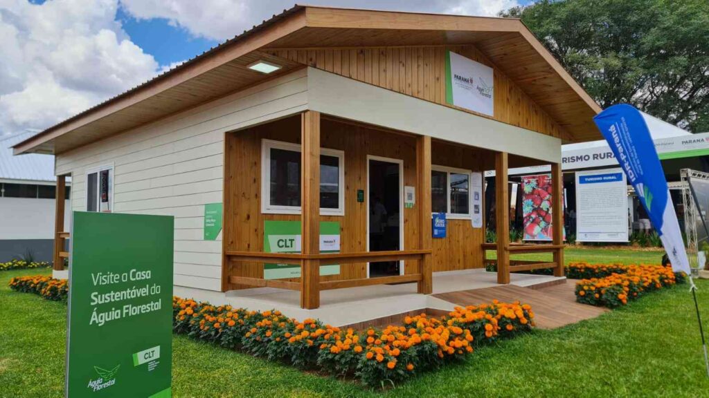 A construção em madeira de florestas plantadas ganhou evidência no Show Rural Coopavel com a apresentação de um modelo de casa sustentável desenvolvido pela Águia Florestal. A proposta foi exibida na área do Instituto de Desenvolvimento Rural do Paraná (IDR‑Paraná) e chamou a atenção de visitantes e especialistas ao demonstrar como a engenharia em madeira pode ser aplicada à habitação rural com foco em sustentabilidade e eficiência.