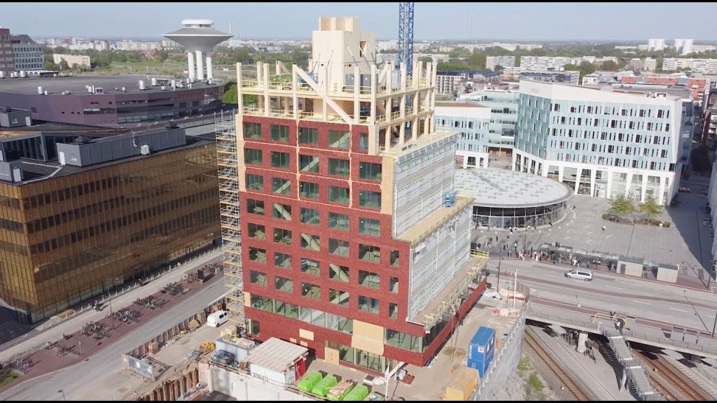 O edifício Fyrtornet, localizado em Malmö, na Suécia, é uma torre de aproximadamente 51 metros de altura construída com madeira engenheirada. Ele é descrito como um arranha-céu de madeira que utiliza soluções estruturais baseadas em engenharia avançada para reduzir o impacto ambiental, destacando-se como uma das principais referências recentes em construção sustentável. O projeto também ganhou destaque internacional. De acordo com o site New Atlas, a torre atinge cerca de 51,5 metros de altura e foi construída quase inteiramente com madeira, utilizando elementos como CLT e glulam, com concreto restrito principalmente às fundações, algo incomum mesmo entre edifícios modernos desse tipo.